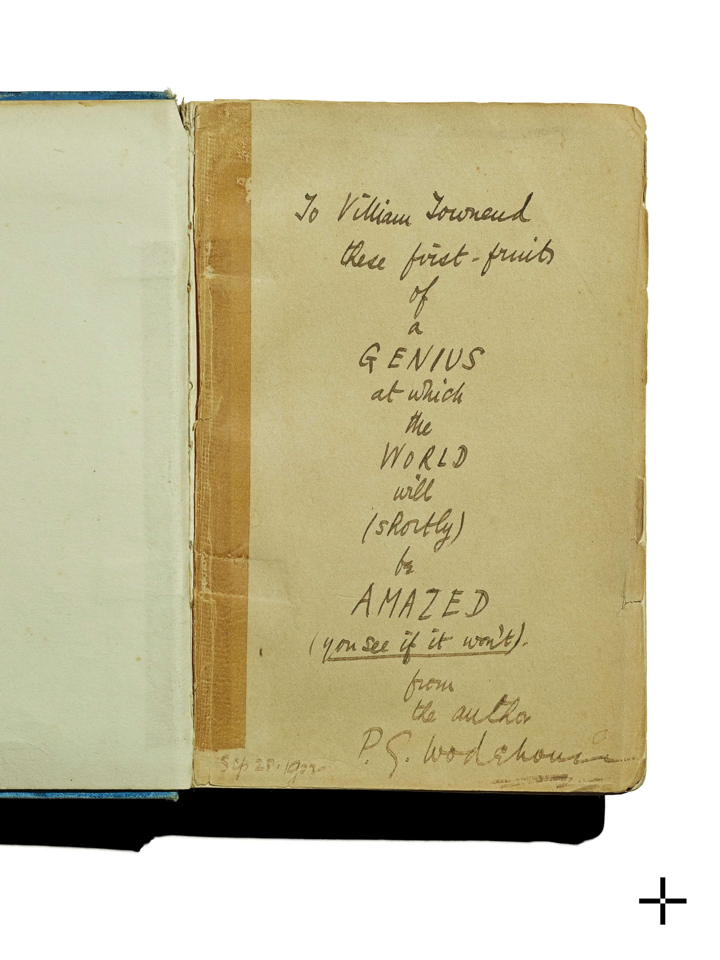 Dedication in “The Pot Hunters”, the first book by P.G. Wodehouse to his great friend William Townend, describing the great things to come. 1902.